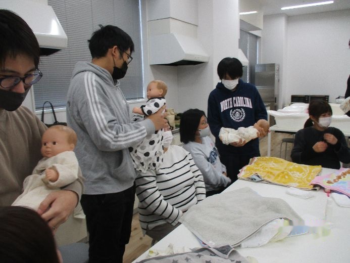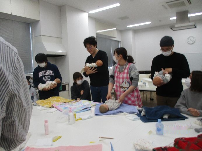 ・実際にやったことがなかったので、沐浴や抱っこをしてみて産後の想像ができてすごく良かったです。沐浴一つとっても非常に手順が多くて、イベントの一つと言われてたのも納得でした。また赤ちゃんが思ったより重く、ずっと抱っこするのが大変だと思いました。今から体力をつけたり、色々なグッズに頼ることが必要だと思いました。