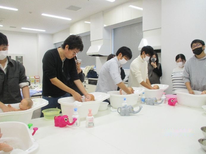 ・実際にやったことがなかったので、沐浴や抱っこをしてみて産後の想像ができてすごく良かったです。沐浴一つとっても非常に手順が多くて、イベントの一つと言われてたのも納得でした。また赤ちゃんが思ったより重く、ずっと抱っこするのが大変だと思いました。今から体力をつけたり、色々なグッズに頼ることが必要だと思いました。